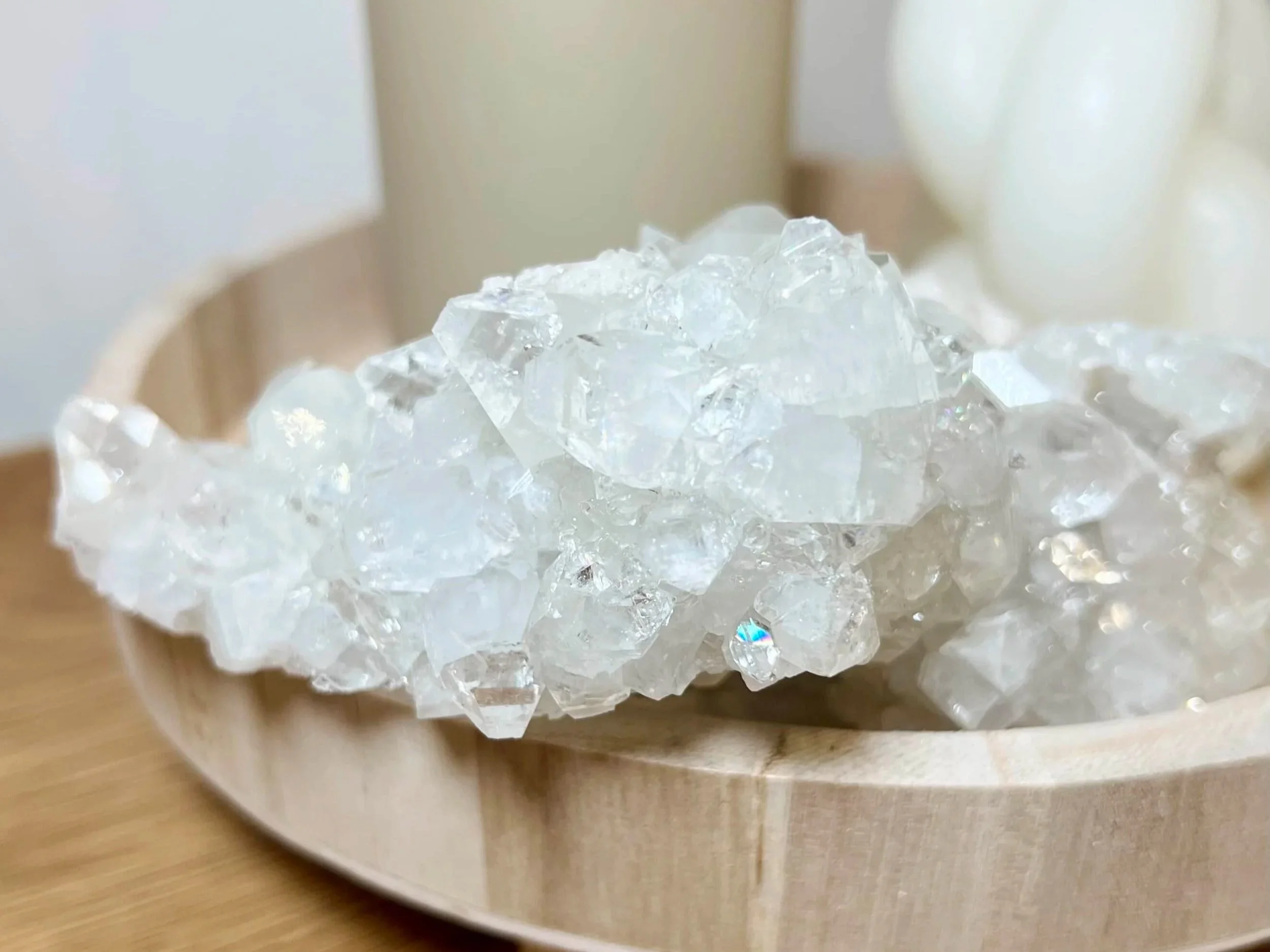 Often associated with spiritual clarity and calm, Apophyllite is believed to support inner peace, emotional release, and a deepened sense of awareness.